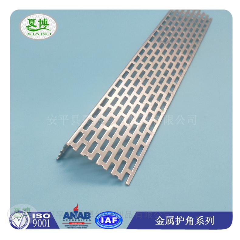 (3)、樓梯護(hù)角網(wǎng),通過(guò)圓孔方便打釘,且使得護(hù)角條與邊角部位的石膏板或者其他粘結(jié)材料結(jié)合的更加牢固。